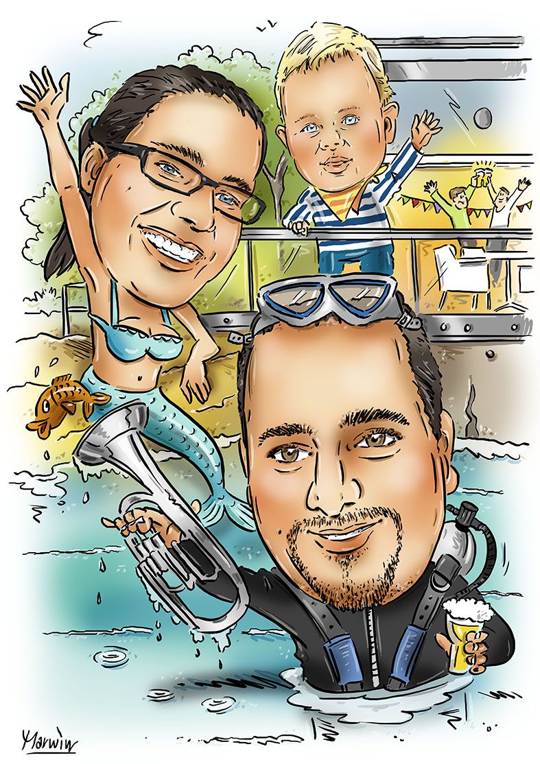 Mijn naam is Marwin Saris en ik teken al ruim 25 jaar karikaturen van foto’s Op deze site zie je allerlei voorbeelden en kun je eenvoudig online een karikatuur aanvragen. Veel succes!