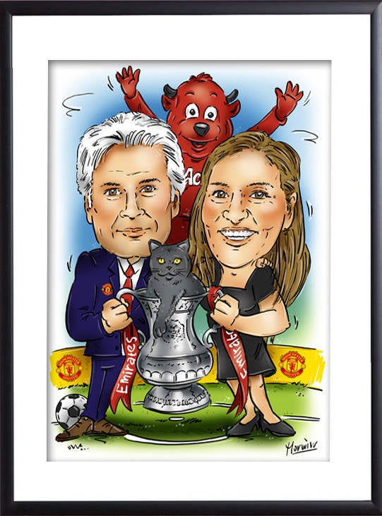 Links: Manchester United wint de beker en hoofd scouting Marcel Bout wordt samen met zijn vrouw in het zonnetje gezet.