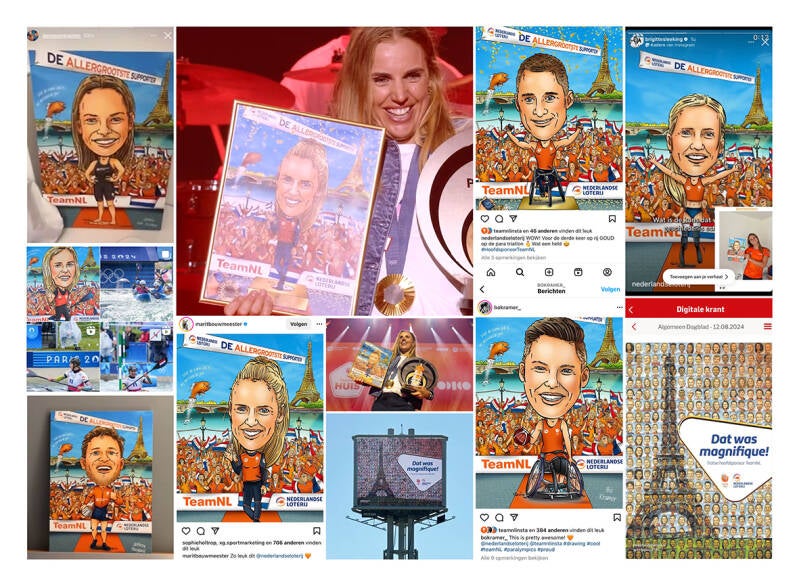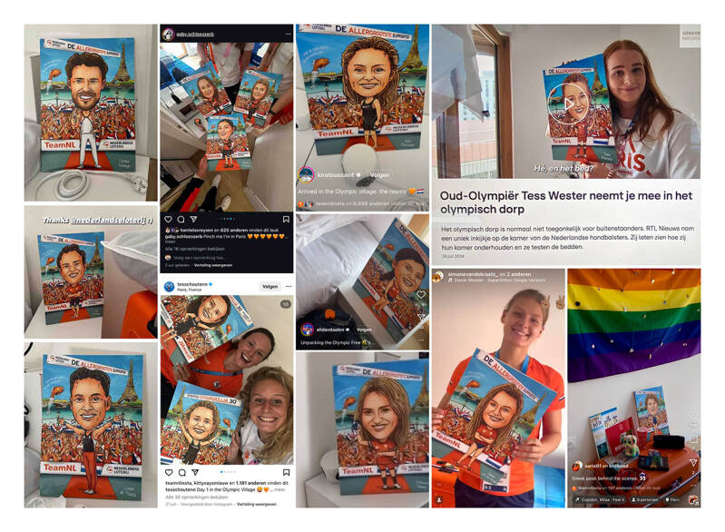 In 2024 gewerkt aan een grote opdracht voor de Nederlandse Loterij. Van alle 300 Nederlandse deelnemers aan de Olympische Spelen 2024 mocht ik een karikatuur maken. Bij aankomst in het Olympische dorp stonden deze als poster op hun nachtkastjes om de spelers te verwelkomen. Op social media ging de actie helemaal los.