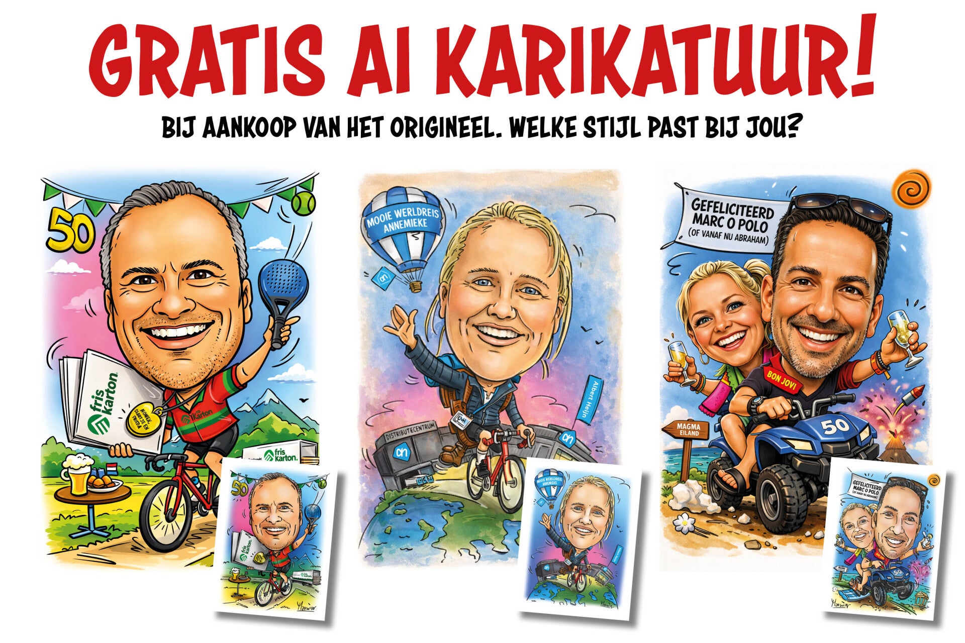 Je vraagt je wel eens af wat je in deze tijd nog aan iemand cadeau kunt doen. Een bosje bloemen, bier pakketje of toch dat boek? Erg creatief is het allemaal niet. Waarom verras je diegene niet met iets originelers. Een cadeau wat nog niemand heeft! Laat eens een karikatuur maken dan ben je verzekerd van succes. Ik nodig je hierbij uit eens rond te kijken op mijn site om inspiratie op te doen. Via onderstaand formulier kun je een aanvraag plaatsen. Bellen, mailen of appen kan natuurlijk ook (zie contact). Veel succes!