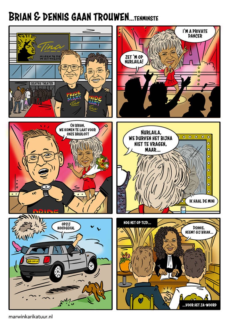 Zij vertolkt de rol van Tina Turner in de Musical ’TINA’ in het Beatrix theater. Ook is zij BABS (Buitengewoon Ambtenaar van de Burgerlijke Stand) en heeft onlangs Brian en Dennis getrouwd. Zowel de karikatuur als de strip waren voor haar een enorme verrassing!
