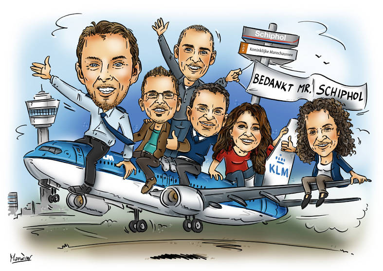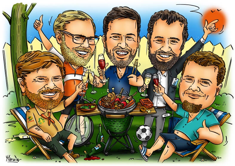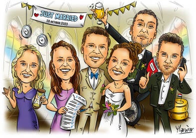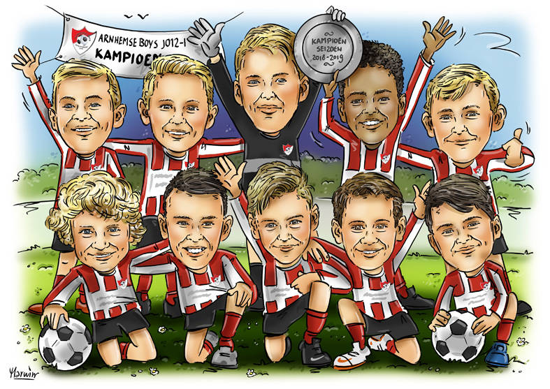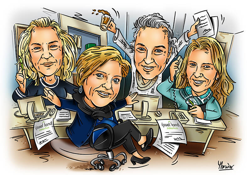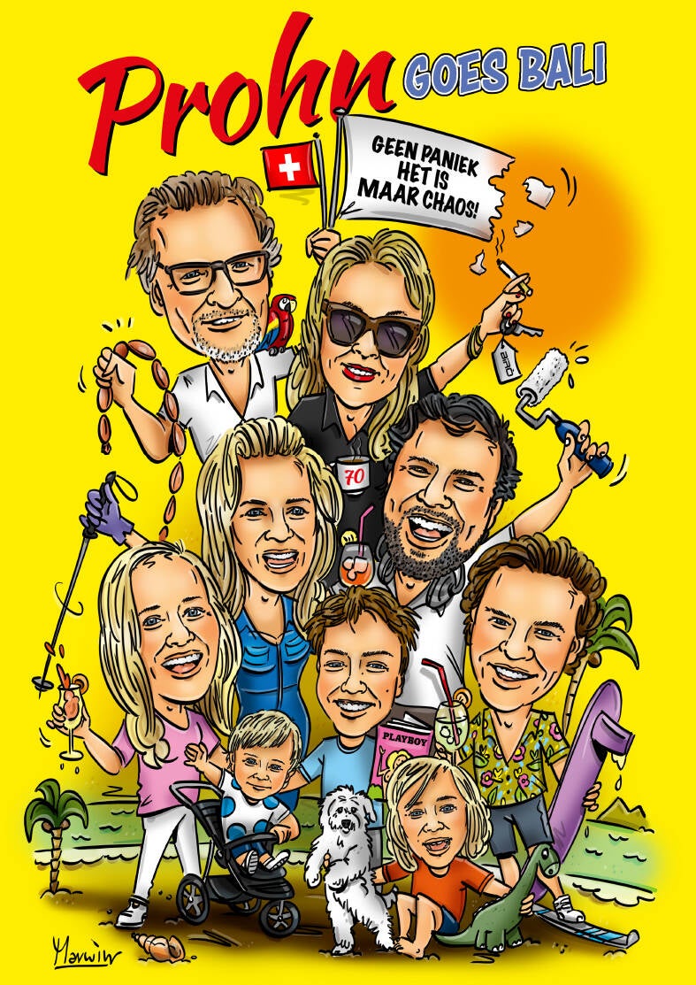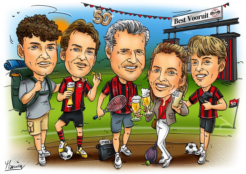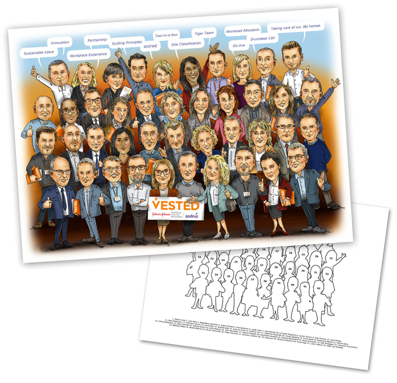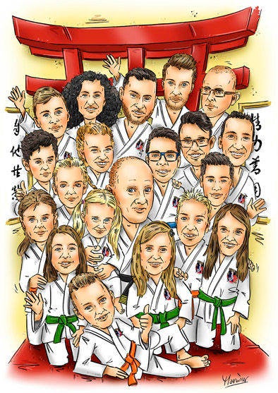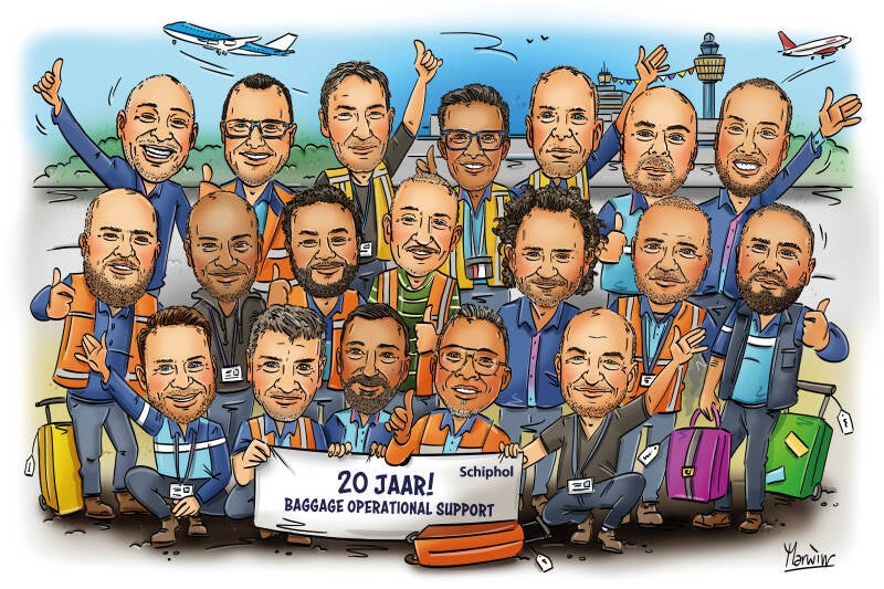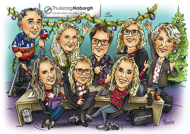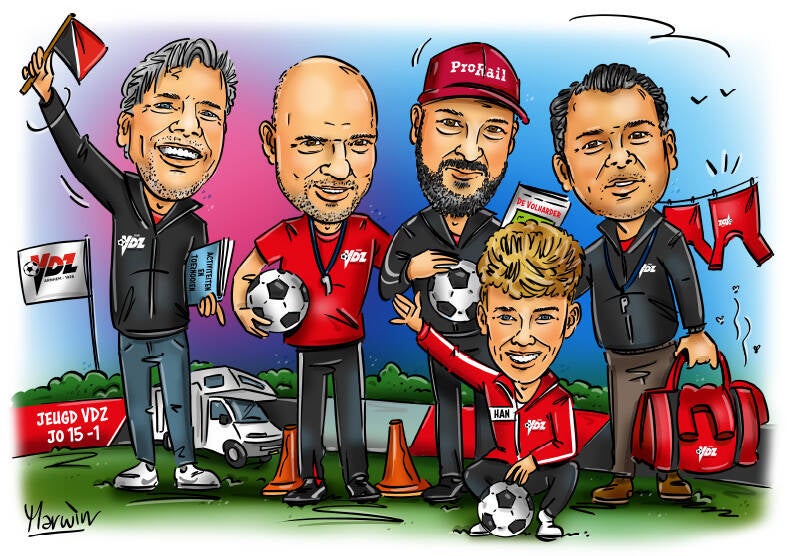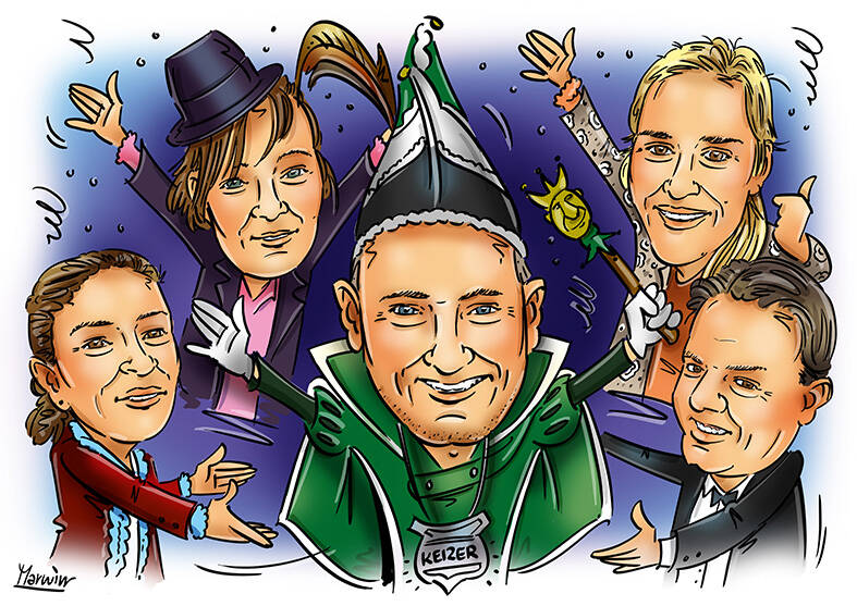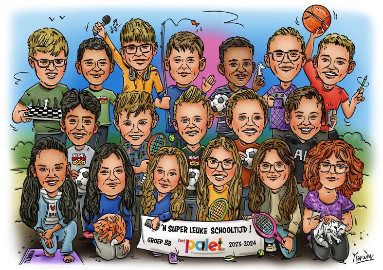 Het is ook mogelijk meerdere mensen in één tekening af te beelden. Bijvoorbeeld met je vrienden, familieleden, collega’s, team of zelfs je hele klas. Hieronder zie je een aantal leuke variaties.