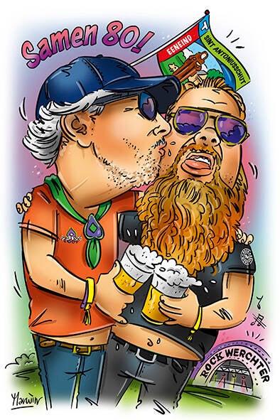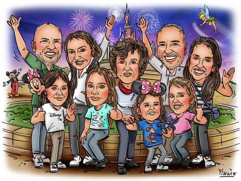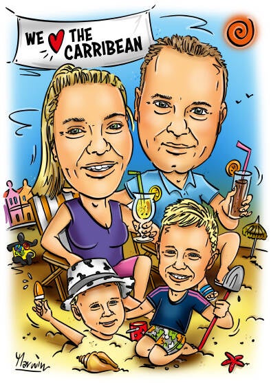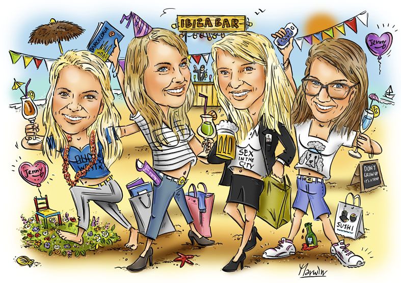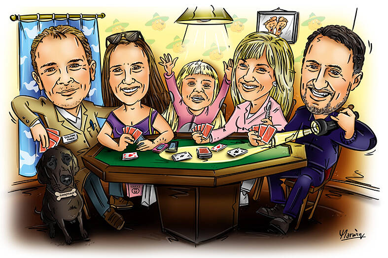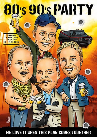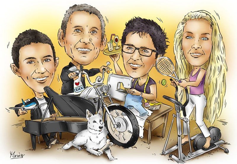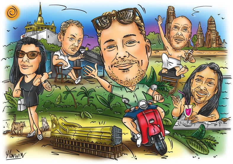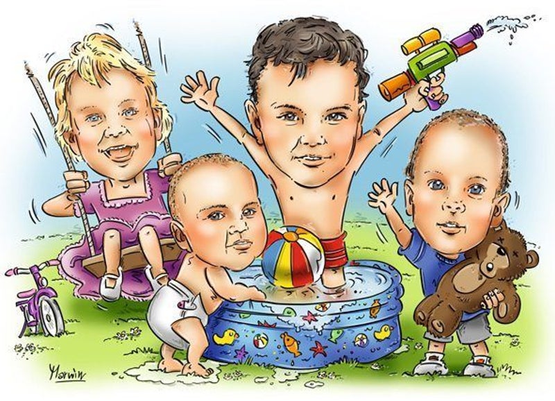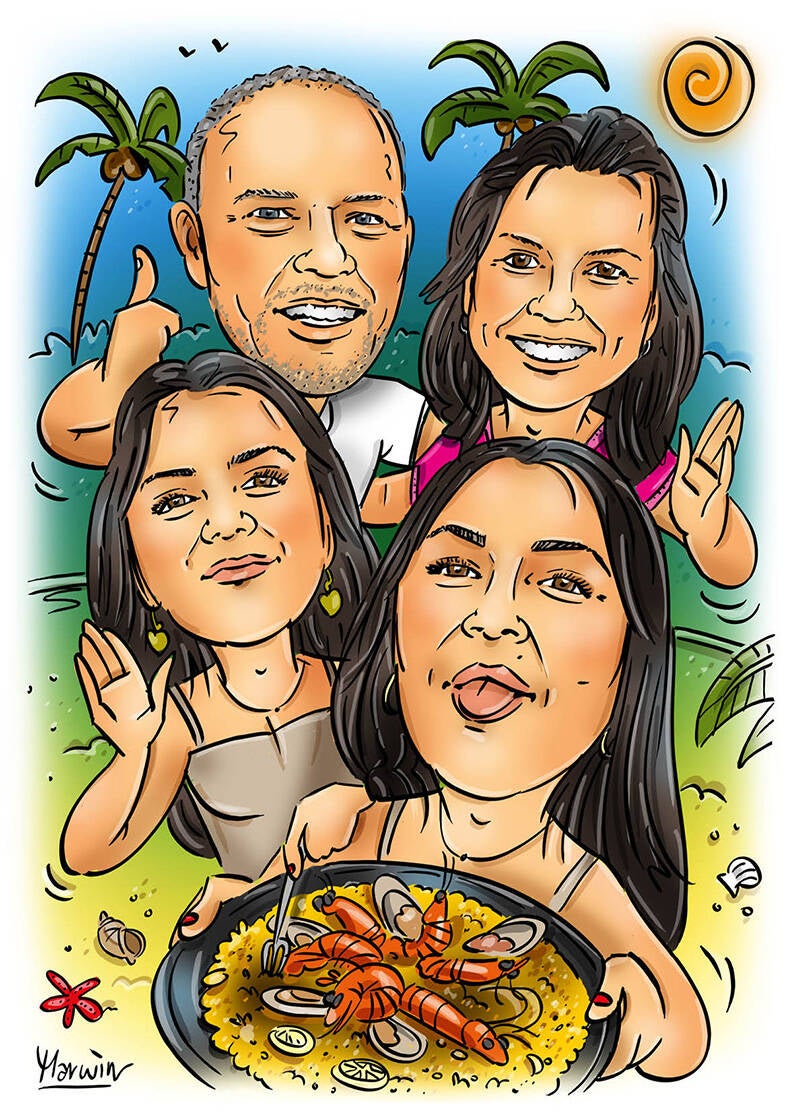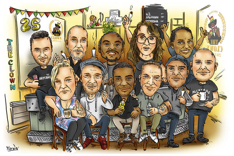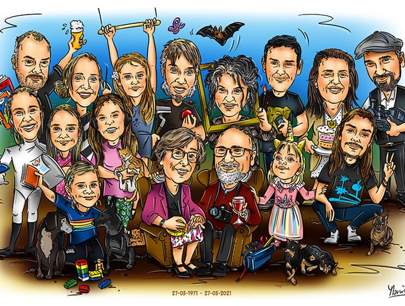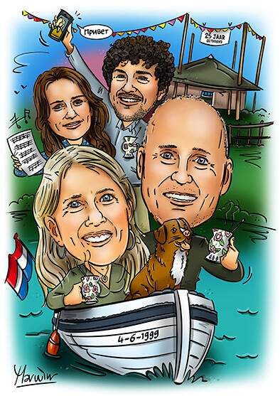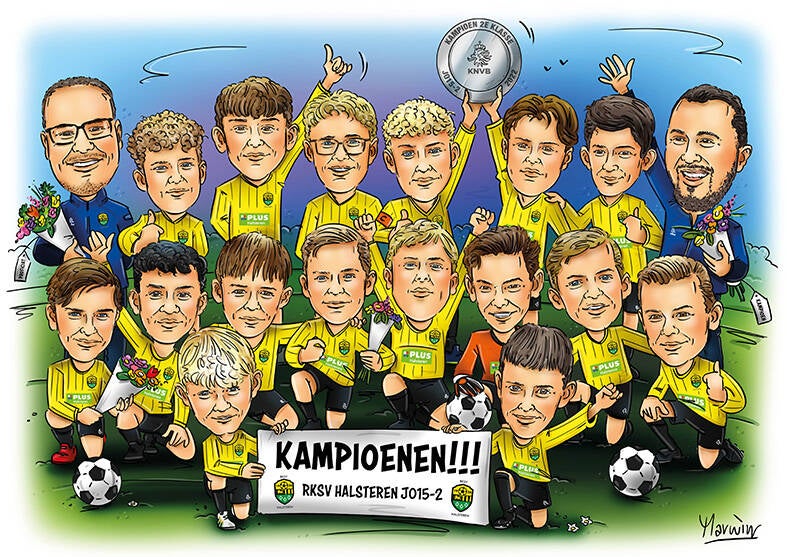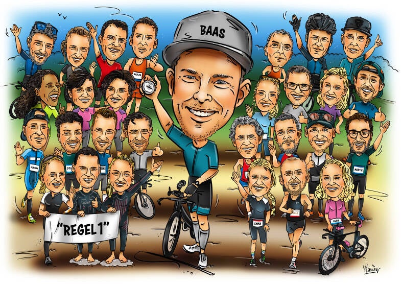 Het is ook mogelijk meerdere mensen in één tekening af te beelden. Bijvoorbeeld met je vrienden, familieleden, collega’s, team of zelfs je hele klas. Hieronder zie je een aantal leuke variaties.