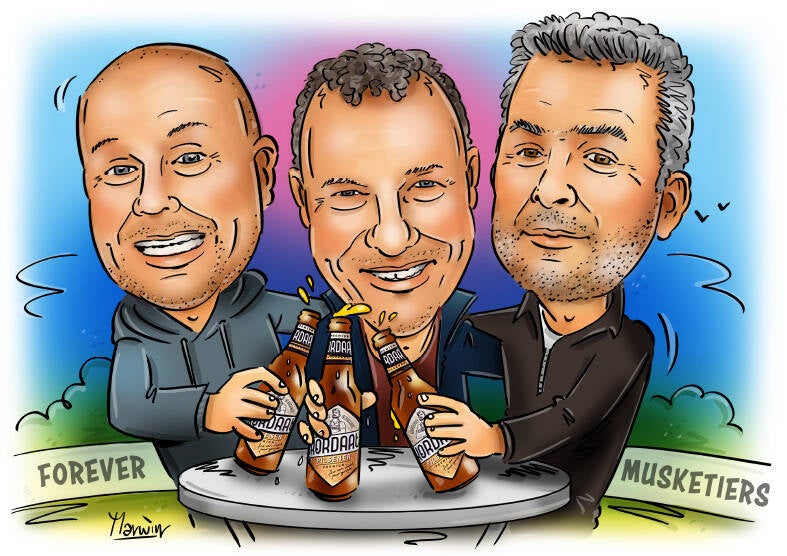 Een nieuwe strandtent in Almere van deze 3 ondernemers. De karikatuur heeft een mooi plekje gekregen.