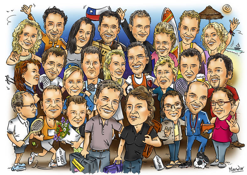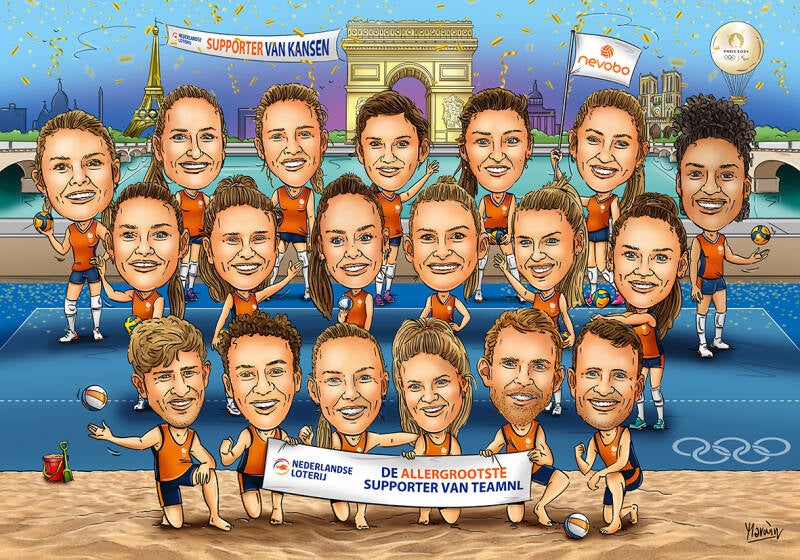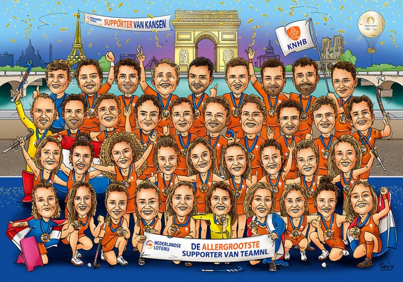 In opdracht van de Nederlandse Loterij heb ik deze groepskarikaturen gemaakt voor alle sportbonden die deelgenomen hebben aan de Olympische Spelen. De medaillewinnaars staan hierop afgebeeld.
