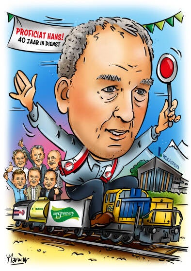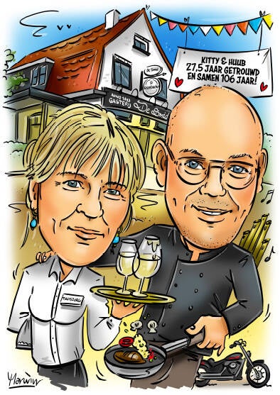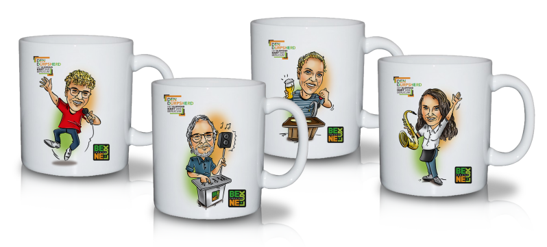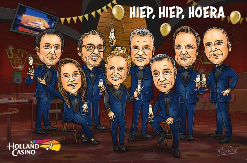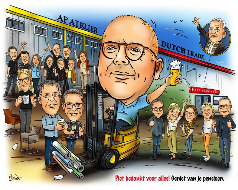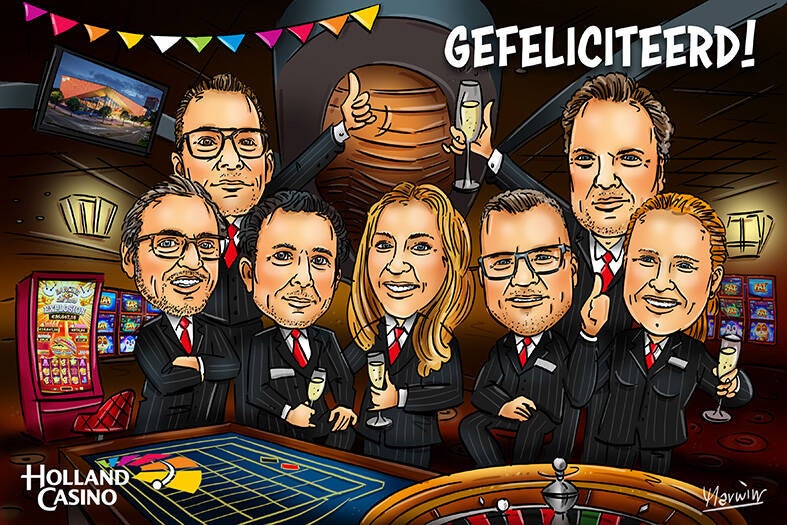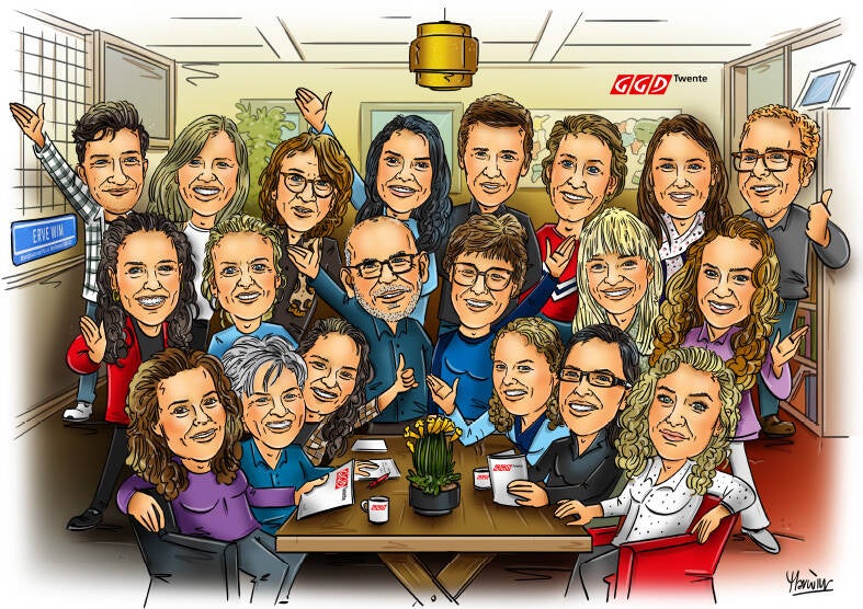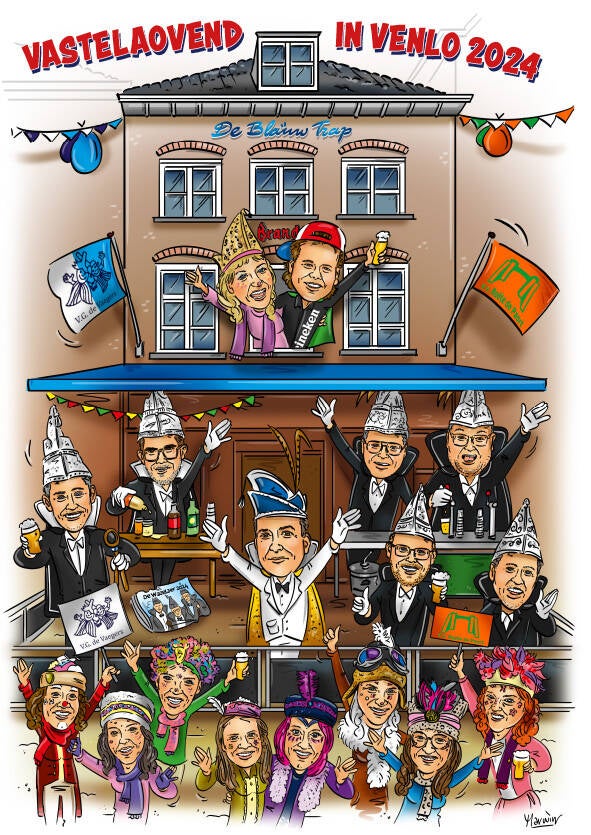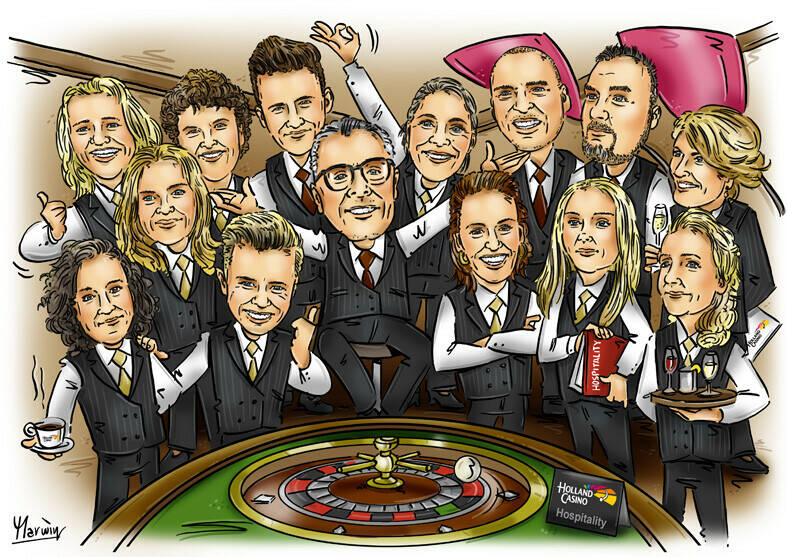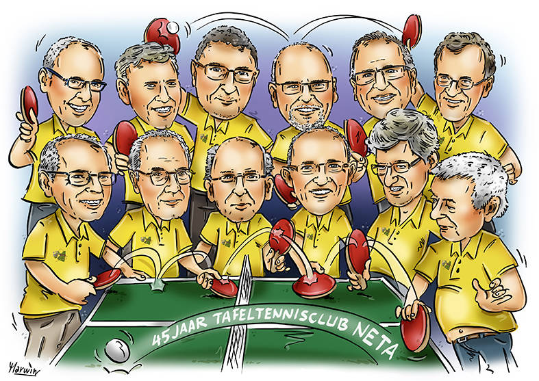 Deze karikatuur van 17 personen heeft een mooi plekje gekregen in cafe Slagroom!