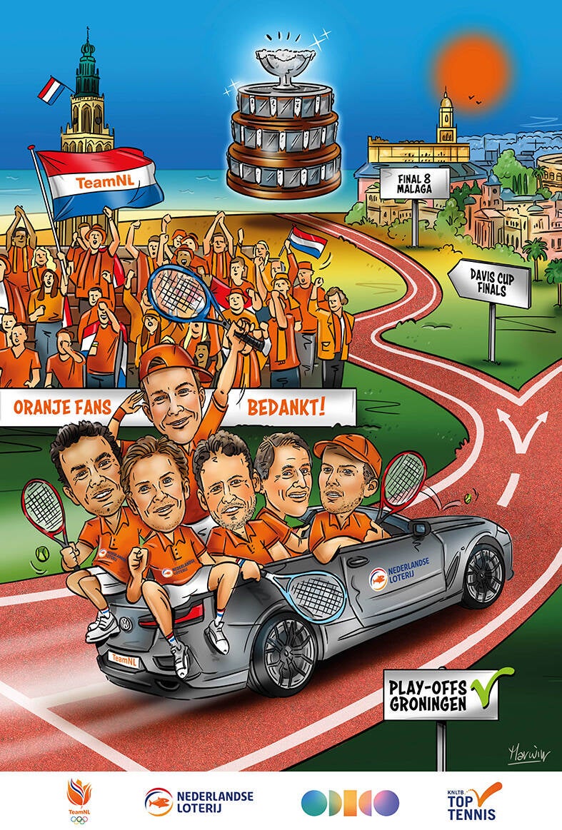 In opdracht van de Nederlandse Loterij een illustratie mogen maken voor de Davis Cup. Alle bekende tennissers zijn hierop afgebeeld.