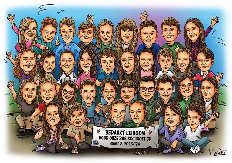 Ieder jaar teken ik voor een groot aantal scholen het eindejaarsgeschenk. De Groep 8 leerlingen krijgen een aandenken voor een hele bijzondere lagere schooltijd.