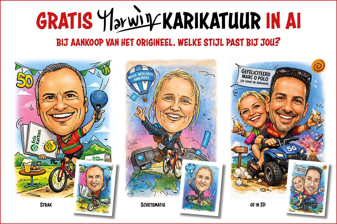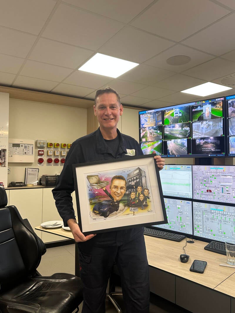 Of je nu 10 jaar in dienst bent of afscheid neemt. Een karikatuur is altijd een mooi gebaar als erkenning.